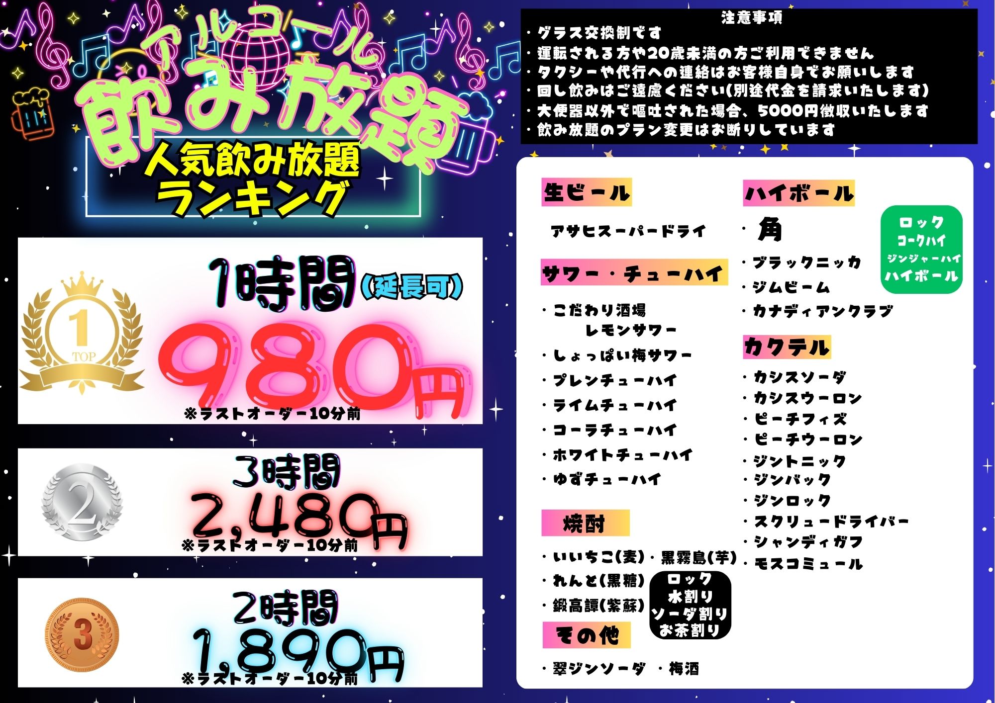 飲み放題プラン変更